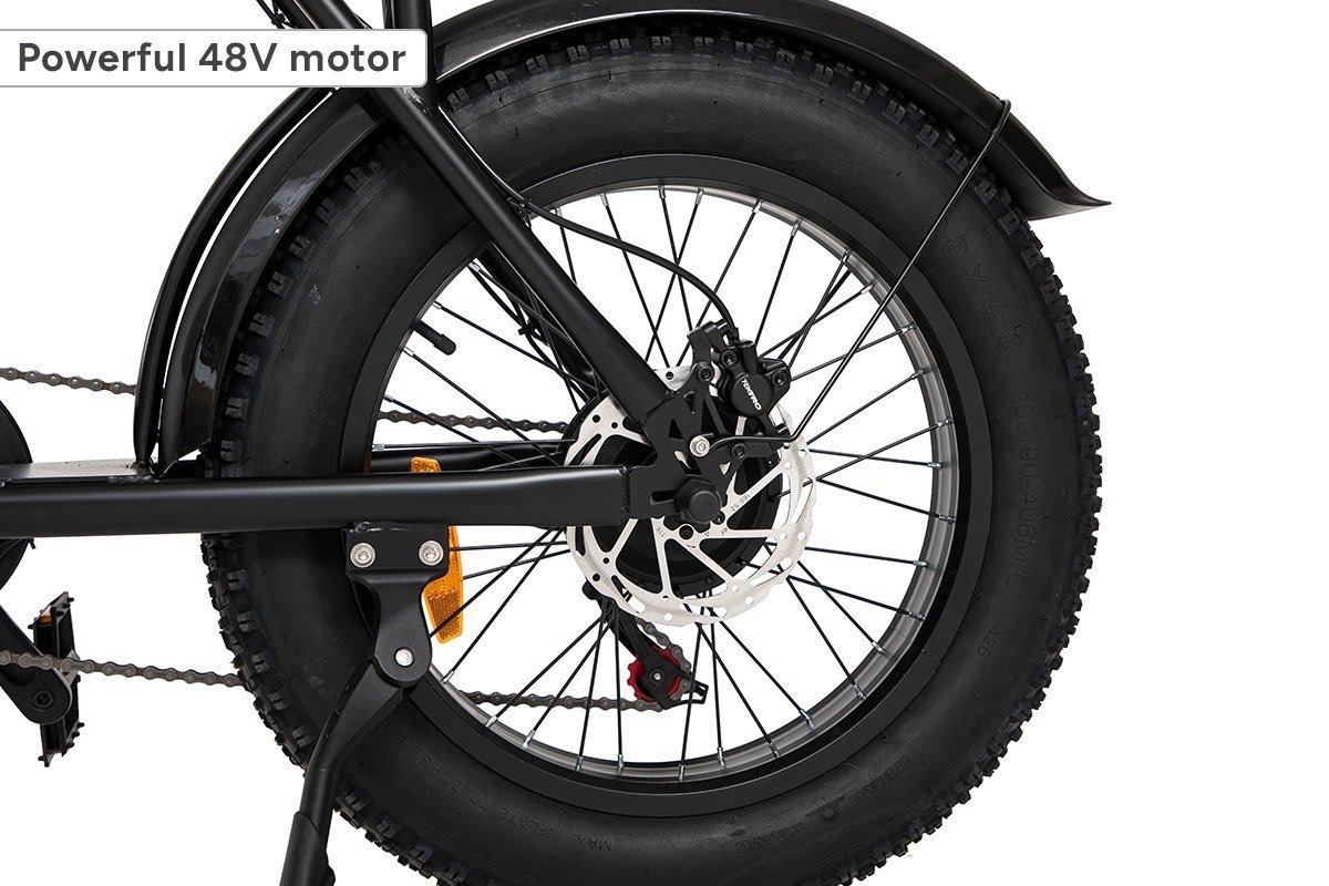 The Fortis FatBro’s 48V motor delivers powerful output for smooth and efficient riding, even on challenging terrains. Engineered for durability, this motor offers reliable performance whether you’re navigating city streets or exploring trails. With this e-bike, you’ll be cruising with power, control and ease.